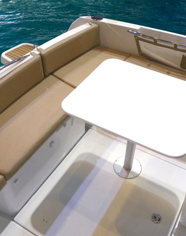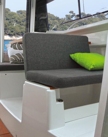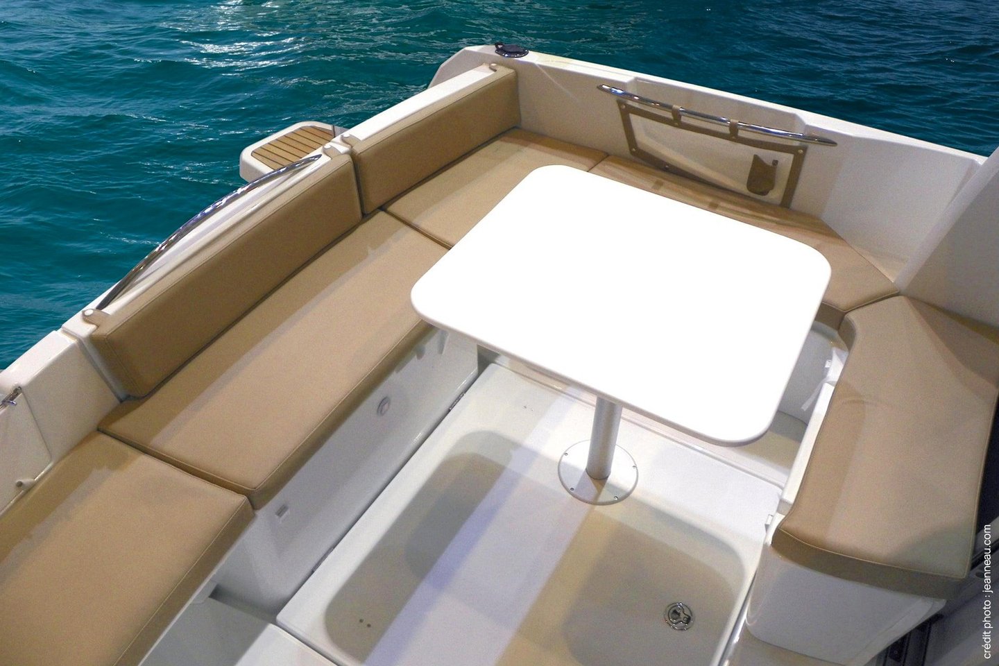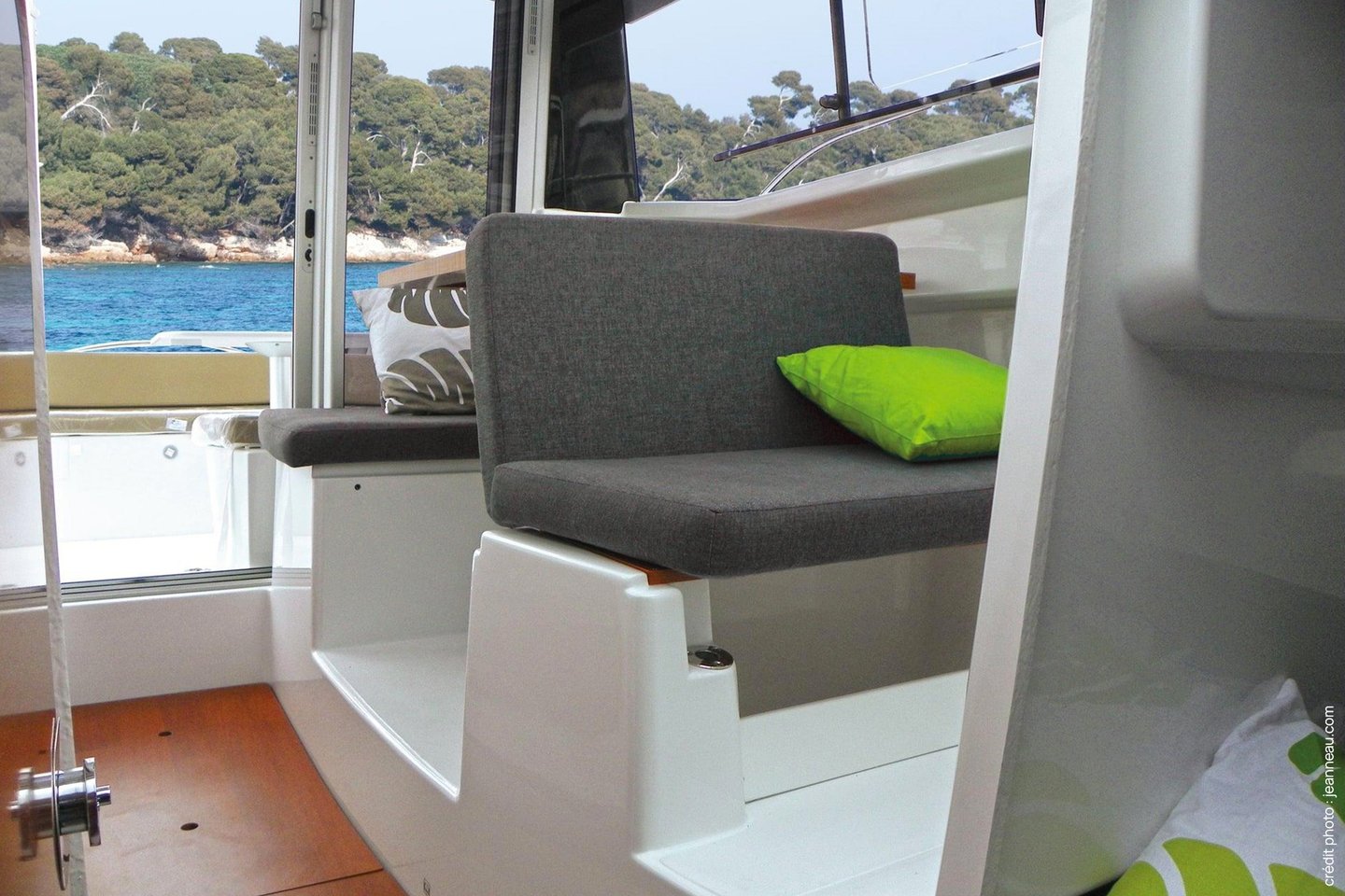 Détendez-vous sur le bain de soleil avant, savourez un instant convivial dans le carré arrière ombragé pouvant accueillir jusqu’à 6 personnes, et profitez d’un confort optimal : échelle et douchette de pont, espace intérieur aménagé pour vos repas à l’abri, et toilettes à bord.